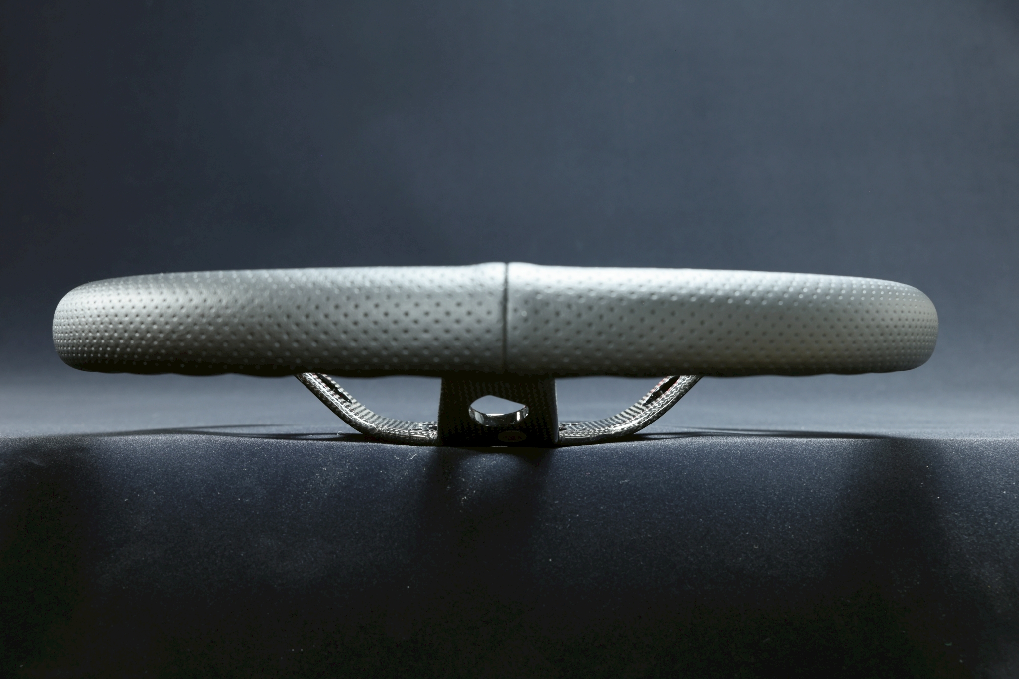 セルフステア時に手指が逃げるようオフセットされたデザイン。
