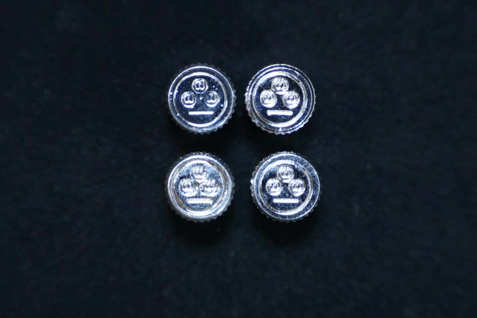 1セット 4個 復刻バルブキャップセット 真鍮製 クロムメッキカラー(シルバー)